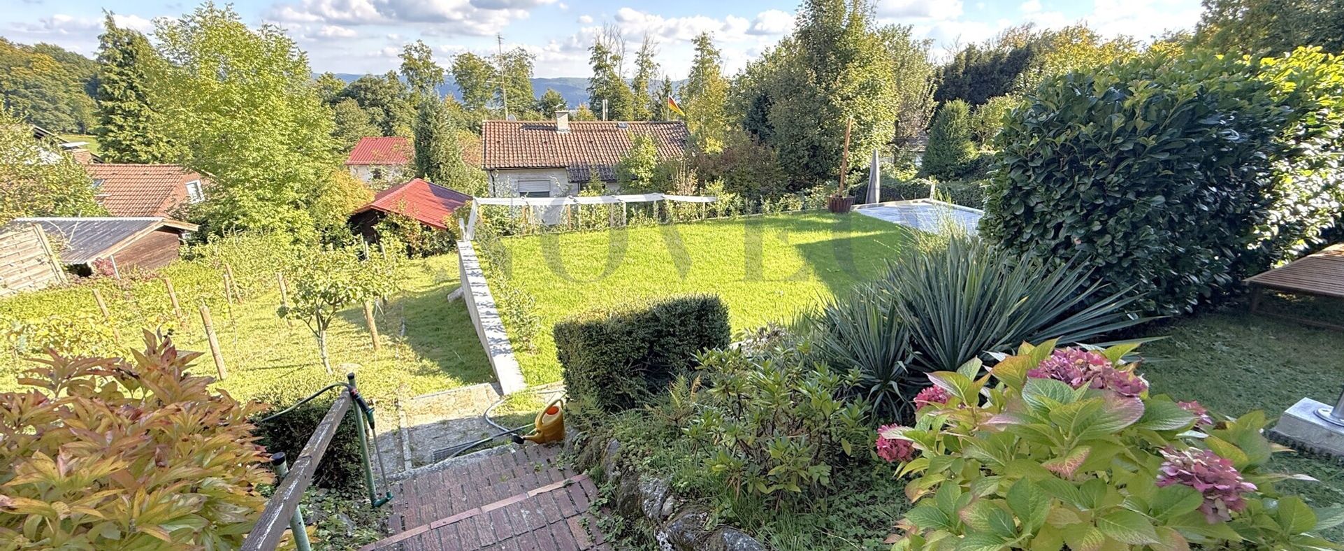 – Balkon über die gesamte Hausbreite mit Blick in den Garten